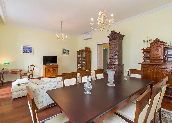 Dit appartement van 160 m^2 is gevestigd op enkele minuten rijden van het Paleis van de Rector, terwijl de Oude haven veerhaven op maar 12 minuten lopen is. De Maria-Hemelvaartkathedraal ligt binnen slechts 13 minuten wandelen van het strand appartement in Dubrovnik.